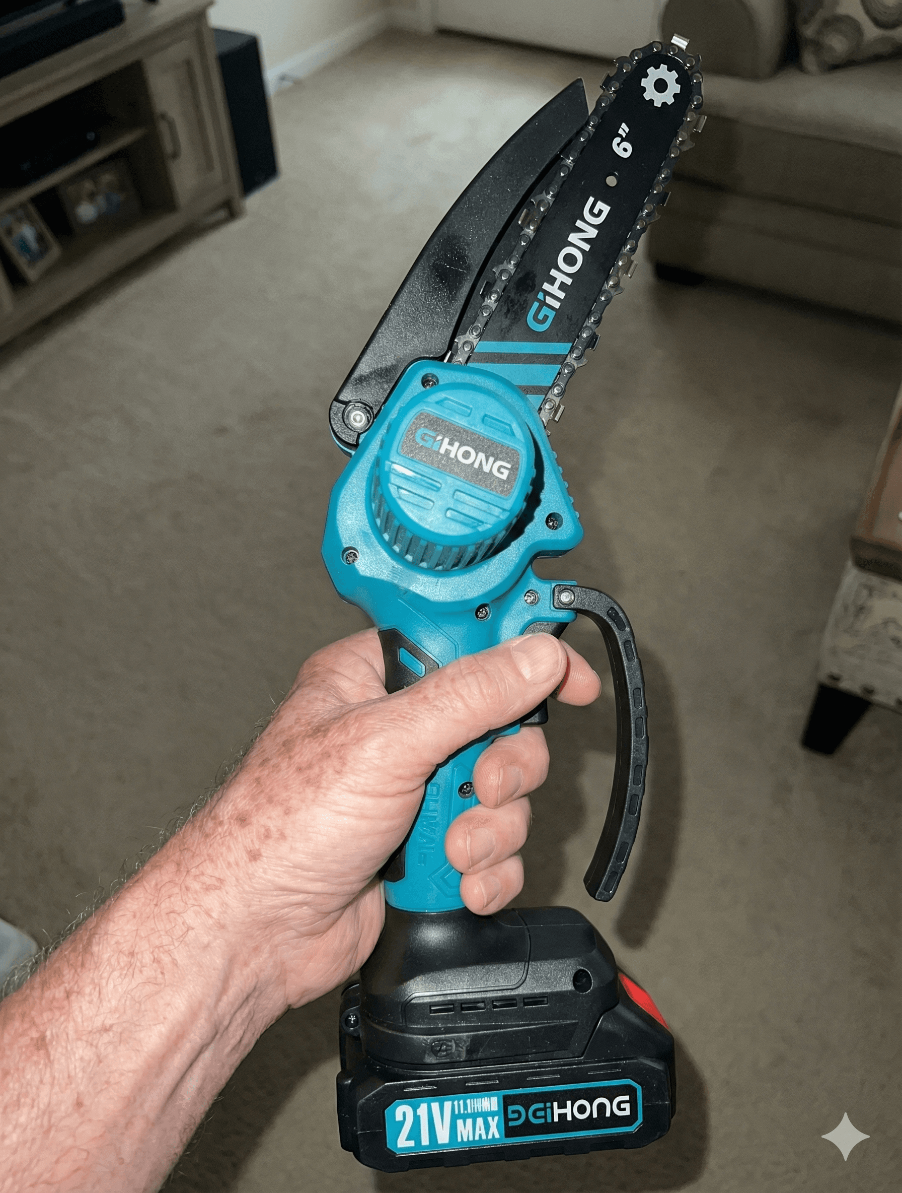 What sets this mini chainsaw apart: lightweight enough to forget you're holding it AND powerful enough to cut real branches. The 4.5-inch guide plate handles the branches you've been stepping over for weeks.