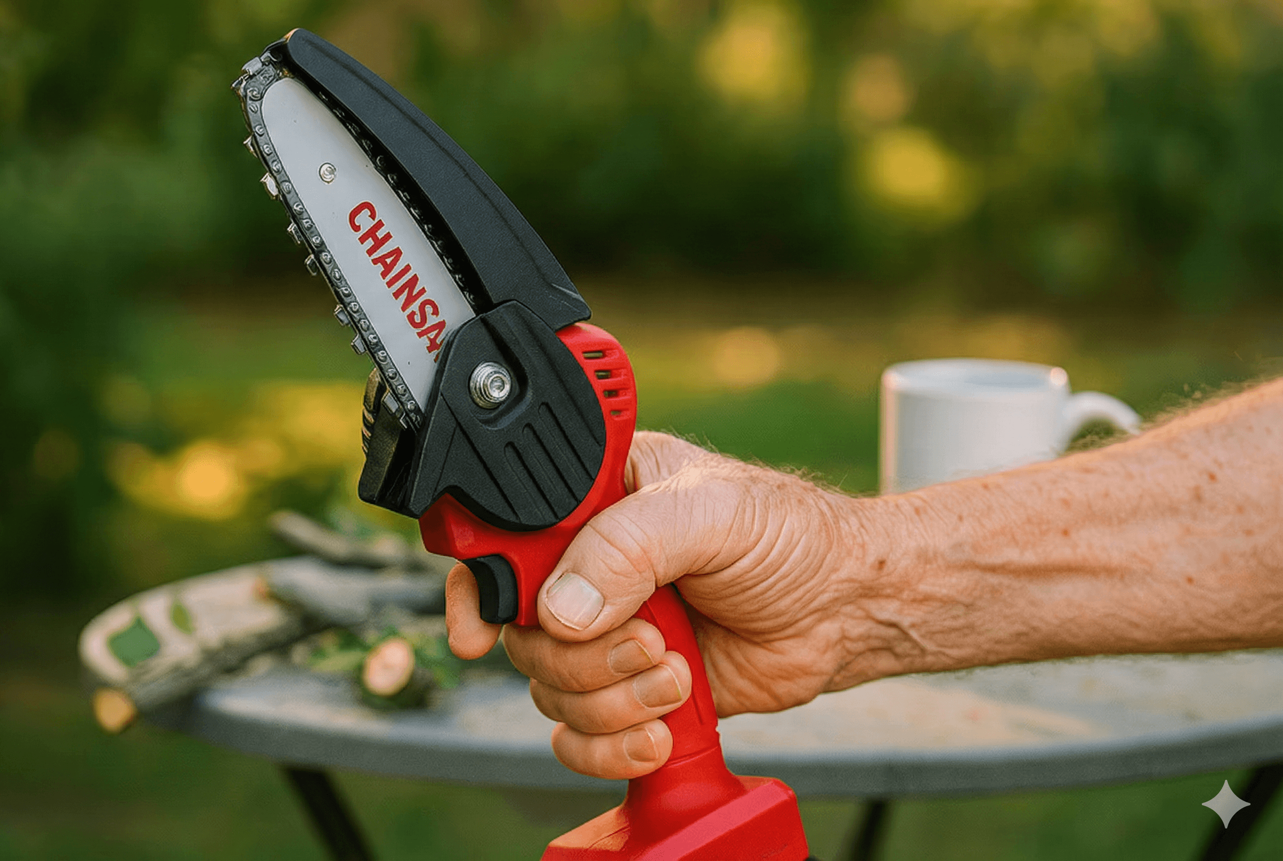 What sets this mini chainsaw apart: lightweight enough to forget you're holding it AND powerful enough to cut real branches. The 4.5-inch guide plate handles the branches you've been stepping over for weeks.